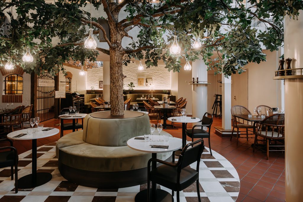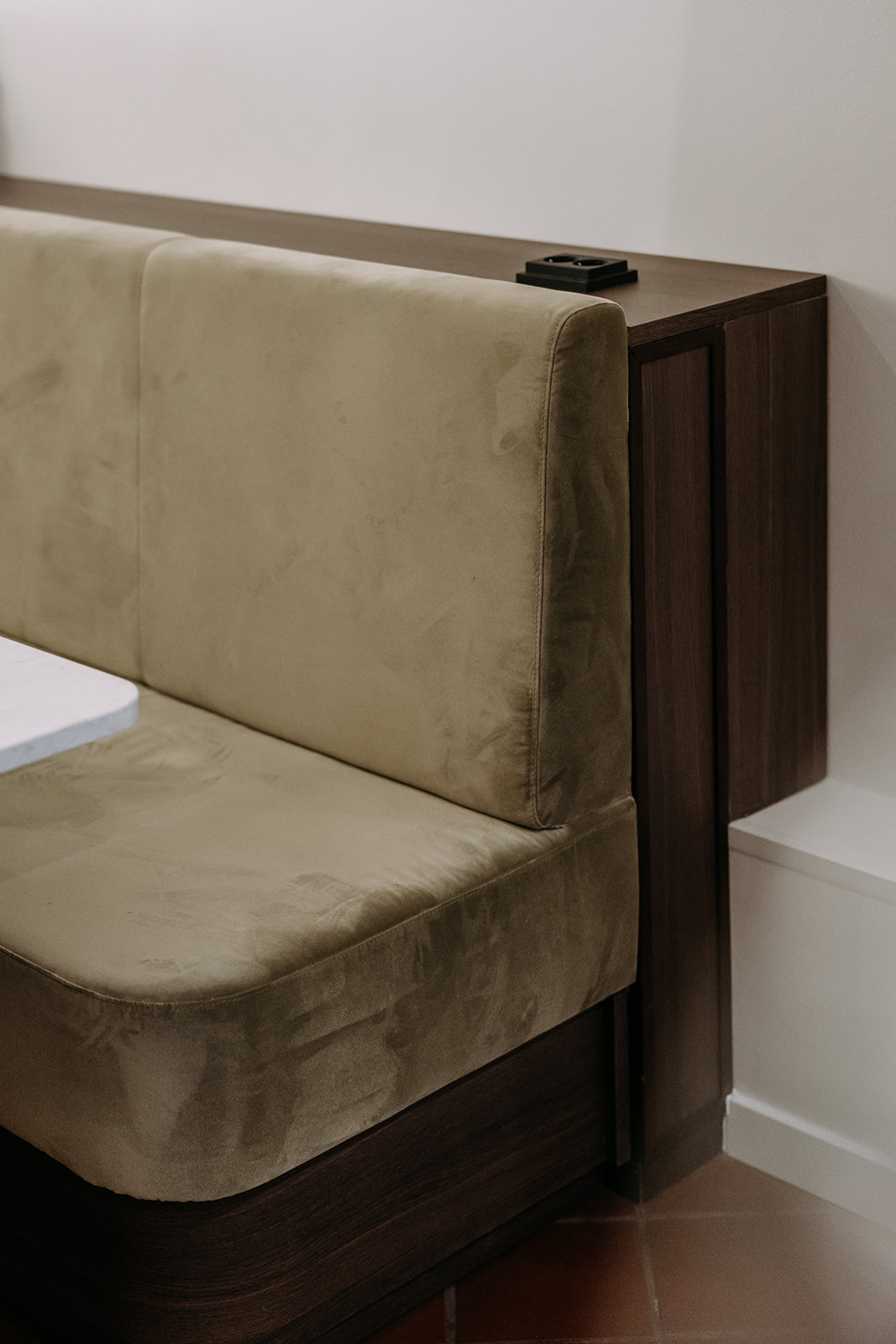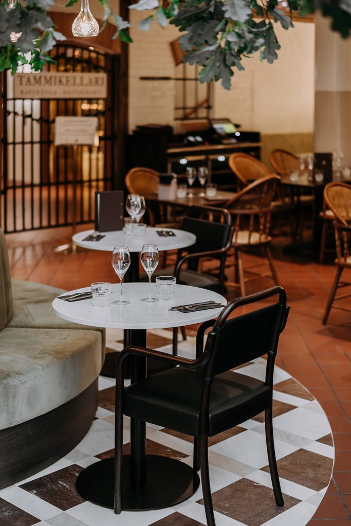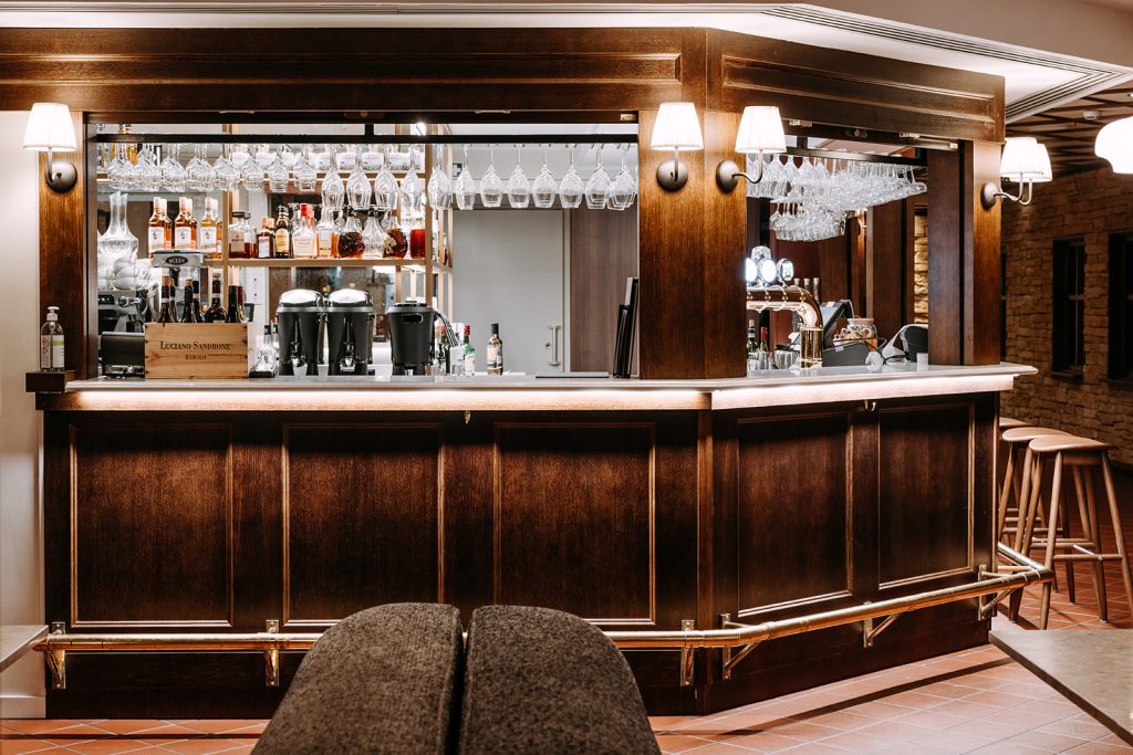 Tammikellariin toteutimme ravintolan isot kiintokalusteet, kuten baaritiskin ja hyllyt.
